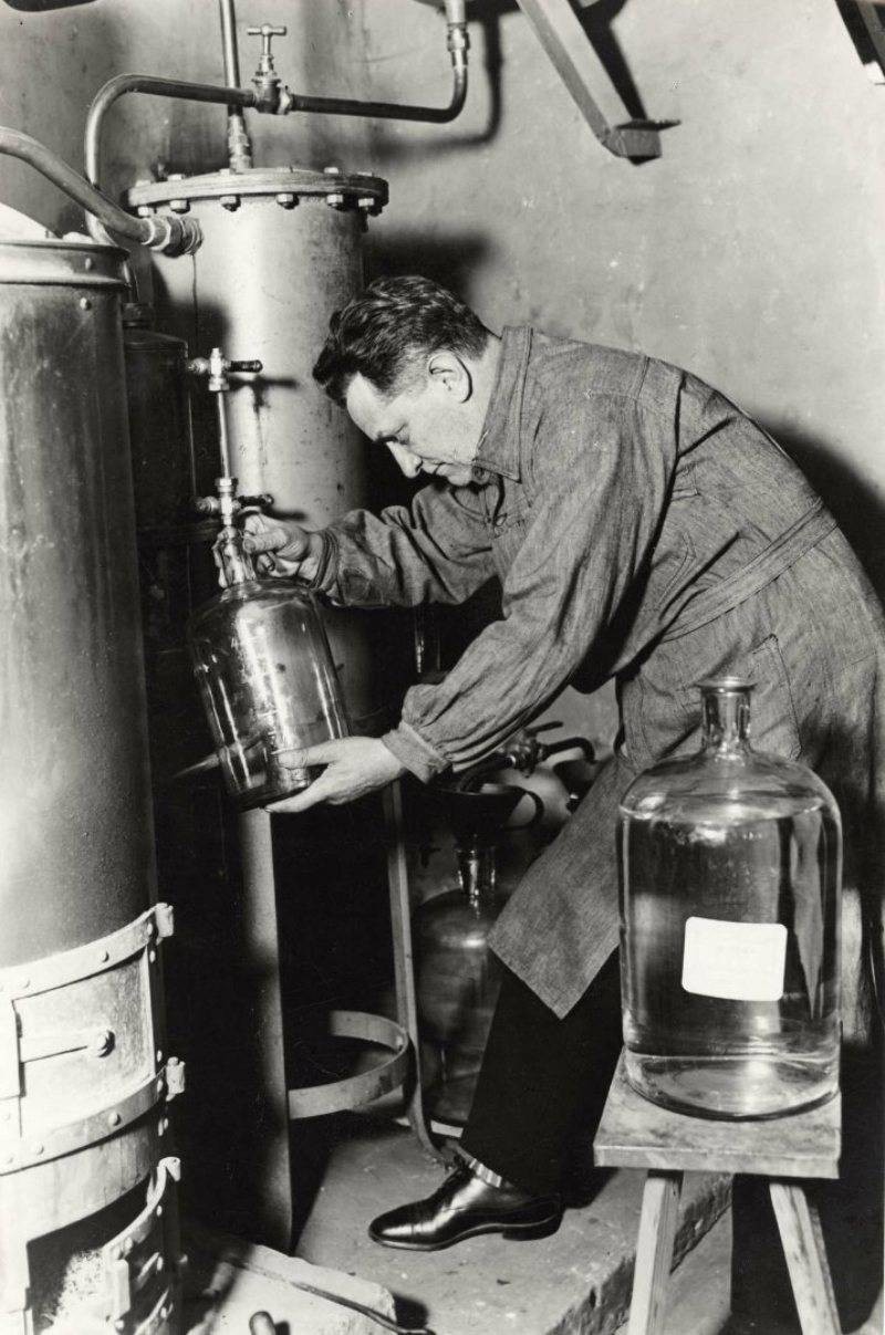 Алекс Авалов, бывший крупный помещик и профессор химии в Санкт-Петербурге, в эмиграции занимающийся производством крепких алкогольных напитков. Германия, Берлин, 1930 годы.