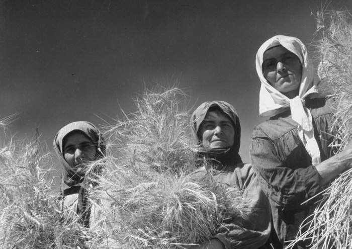 Украинские женщины убирают пшеницу в колхозе недалеко от Харькова.