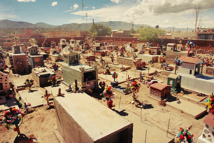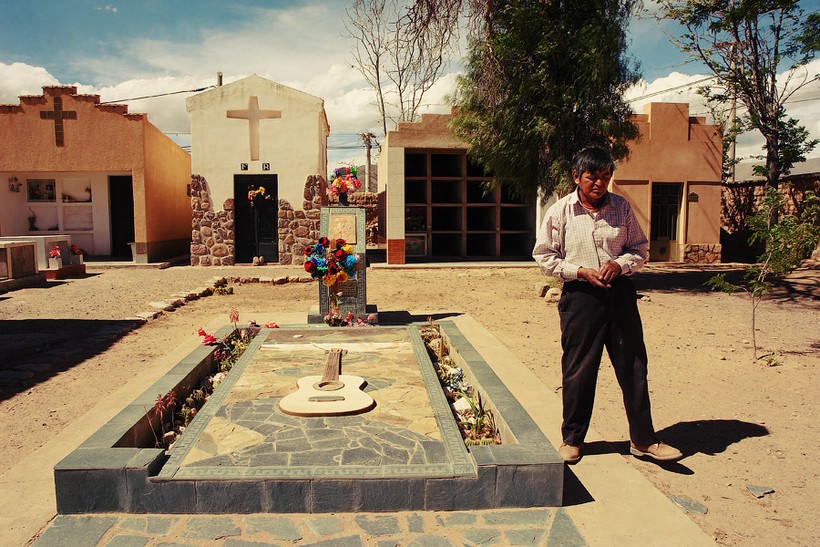 На умауакском кладбище все могилы, как видно из фотографий, охраняют гномы. Их дома виднеются над каждым захоронением. Днем все гномы были на заработках в городе Хухуе — поэтому, сорри, в кадр никто из них не попал. Кладбищенский сторож, прекрасный как Хухуйский Бог, играл для нас на импровизированной гитаре, взяв за свою игру импровизированные 3 песо.