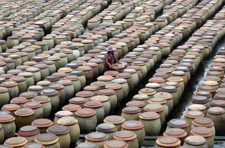 На этой фабрике в Цзиньцзяне, провинция Фуцзянь, делают соевый соус традиционным старинным способом.