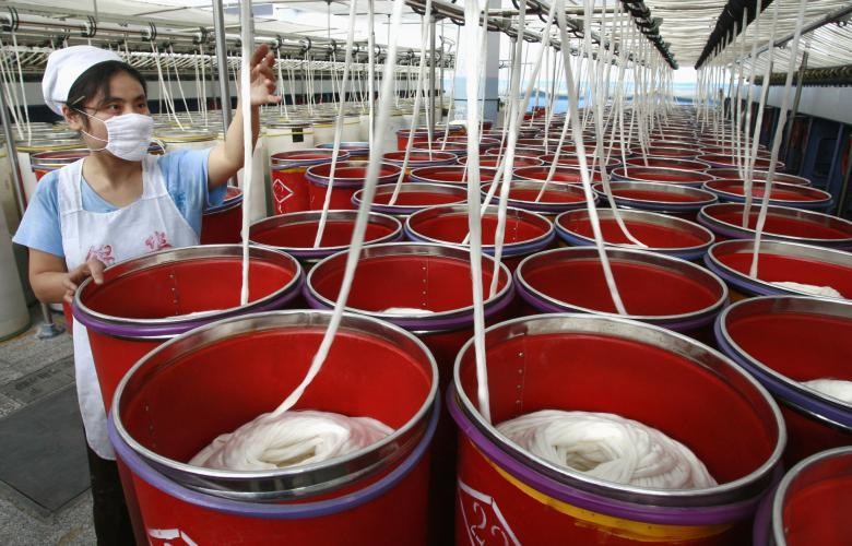 Так производят текстиль на фабрике в Суйнине, Сычуань.