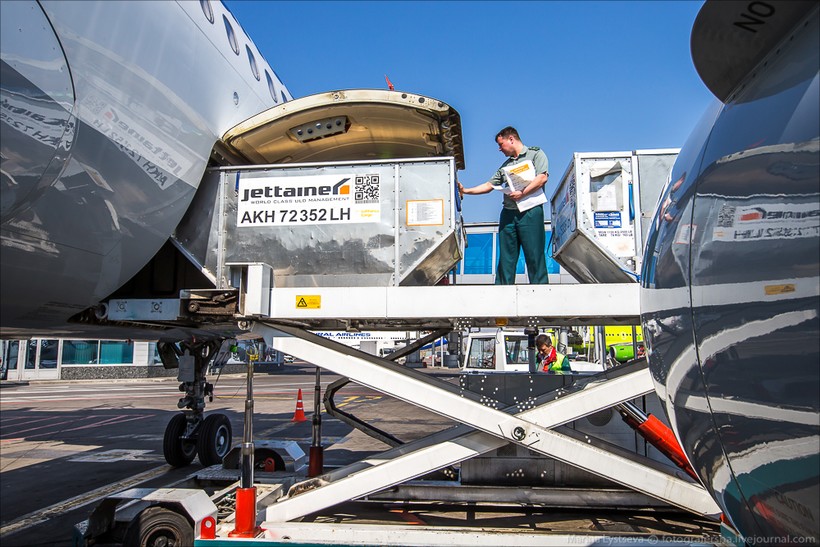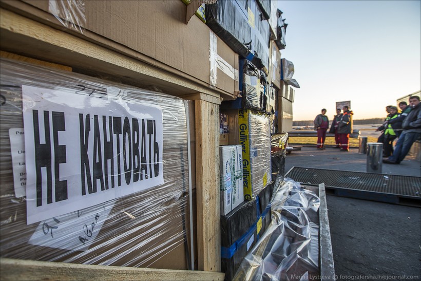 Переходим в грузовой терминал. Здесь работа также не прекращается ни днем, ни ночью.