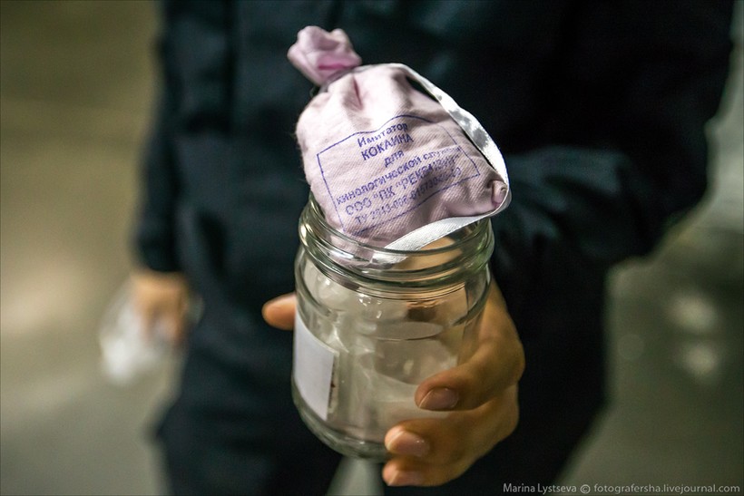 При мне ничего запретного выявлено не было, но периодически четырехлапому таможеннику подкладывают в специальный чемодан проверочный тест-имитатор, чтобы не расслаблялся.
