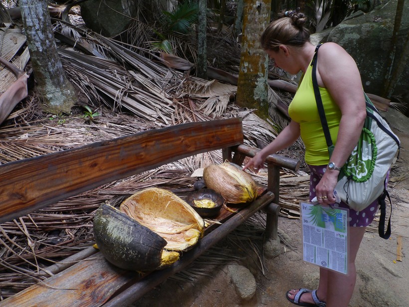 Местные умельцы создают из скорлупы морского кокоса красивейшие изделия: чаши, вазы, шкатулки и многие другие изящные поделки.