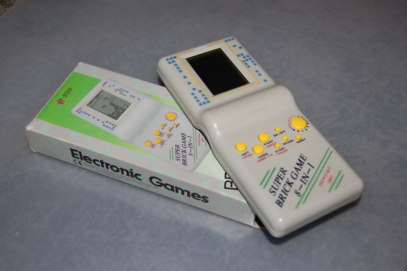 Массовой же она стала в 1990-х, когда появились первые китайские консоли Brick Game, включавшие несколько игр, в том числе и с тетрис. Игровое поле прямоугольной формы 10 на 20, всего 200 пикселов. Справа от поля табло с цифровой индикацией идущей игры.