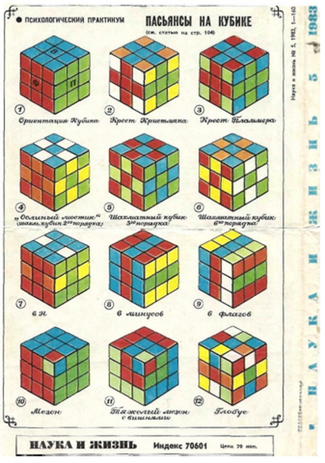 В одном из номеров «Науки и жизни» на цветной вкладке разместили пошаговые схемы сборки кубика — основной и различных рисунков. Вырванные листы перерисовывались и бережно передавались из рук в руки.