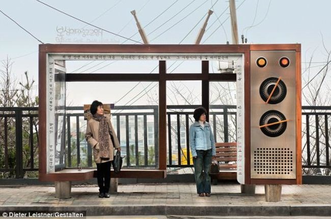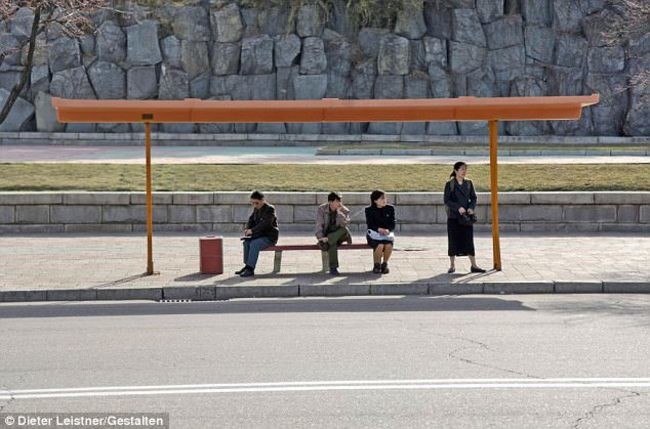 Пассажиры ожидают на автобусной остановке в Пхеньяне