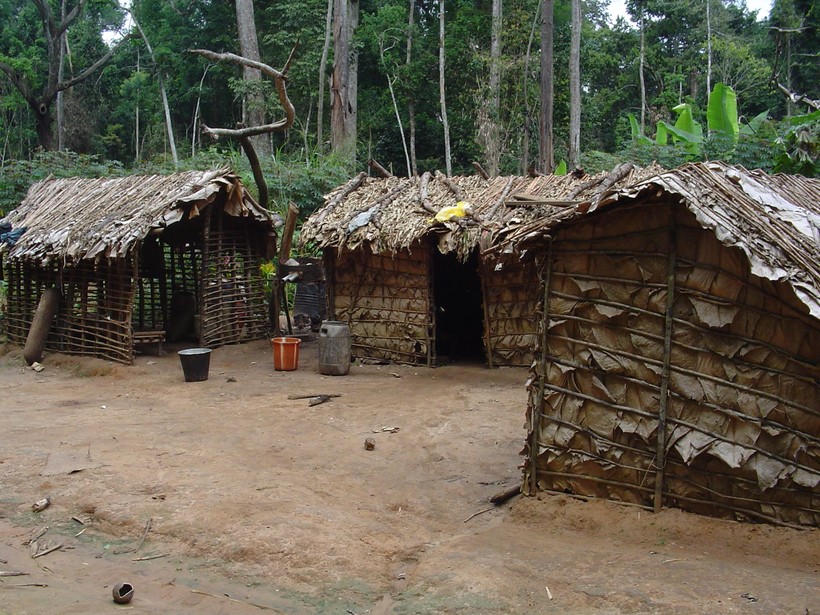 Жизнь пигмеев непроста) Они обитают во временных деревнях в лесах. Почему временные, — спросите вы? У самого маленького народа кочевой образ жизни, они постоянно в поисках пищи и ищут богатые фруктами и медом места. А еще у них есть древние обычаи. Так, если в племени умер человек, то его хоронят под крышей хижины и бросают поселение навсегда.