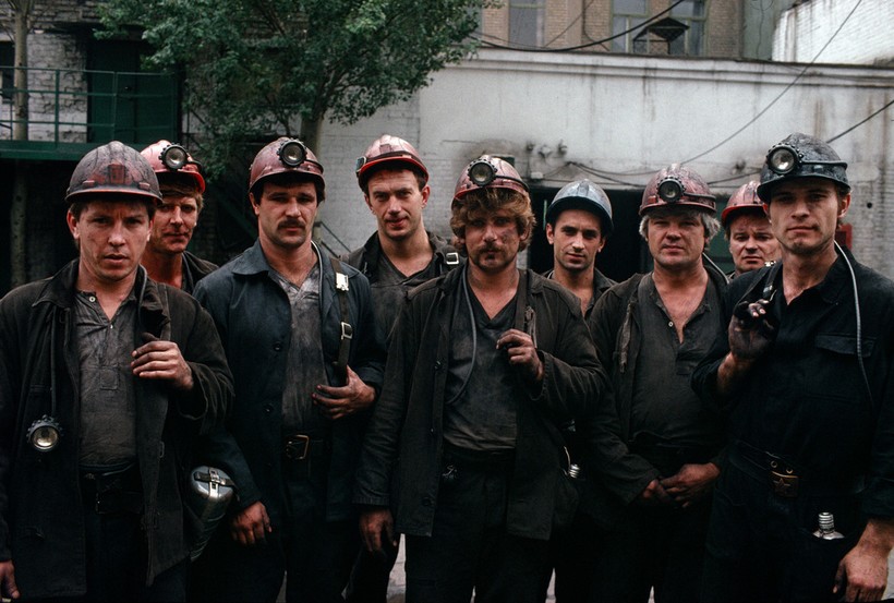 Групповой снимок шахтеров. УССР, Донецк, 1988 год.