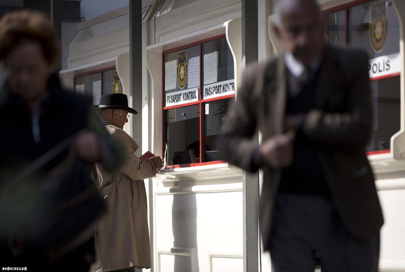 Мужчина проходит паспортный контроль для пересечения границы. Всего таких пунктов на острове шесть: