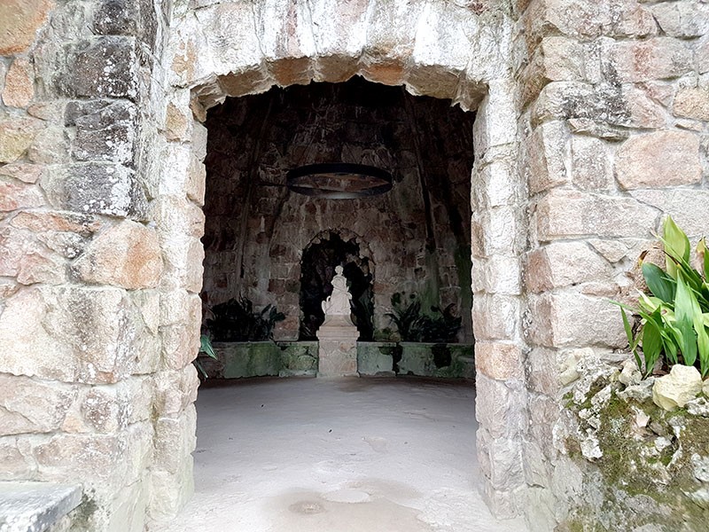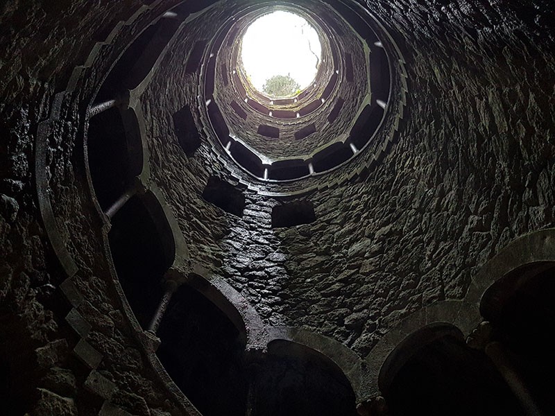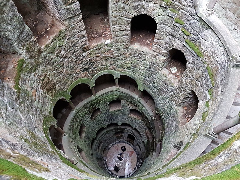 Самое знаменитое и загадочное место усадьбы — колодец Посвящения. Его глубина — почти 30 метров, вниз ведут 9 ярусов спиральной лестницы. По легенде, эти девять уровней означают девять кругов ада, чистилища и рая, описанные Данте. На дне колодца выложен герб Монтейру — восьмиконечная звезда с крестом тамплиеров. На стене — сияющий треугольник — один из символов масонства. Есть мнение, что тут проходили религиозные церемонии масонского братства.