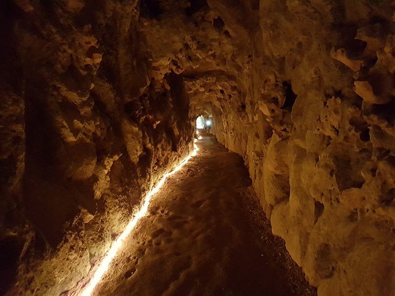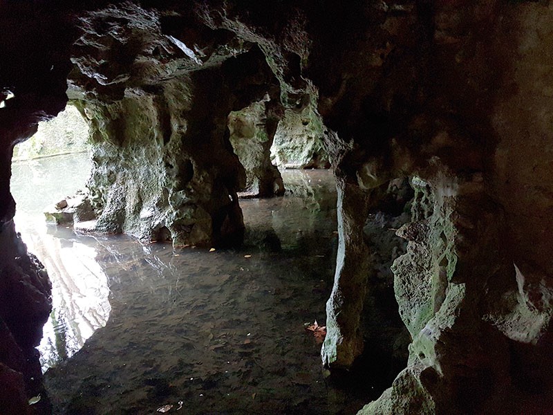 Попасть в колодец можно через пещеры. Их тут очень много — расходятся в разные стороны. Когда, заглядевшись вокруг, отстала от друзей, испытала нечто вроде панической атаки. Особенно когда поняла, что сын отправился исследовать пещеры самостоятельно. Кричать тут бесполезно — голос тонет в камне... Вдали — мой исследователь с фонариком в телефоне. Нашелся:)