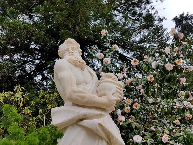 В верхней части парка находится лес. Внизу все выглядит благородно: цветы, скульптуры, каналы, гроты и пещеры, беседки и резные скамейки. Идем туда.