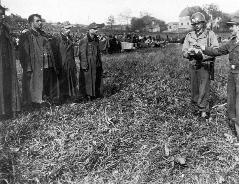 Немецкие заключенные на кладбище Сен-Лоран-сюр-Мер. Франция, 28 мая 1945 года.