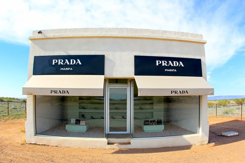 Это настоящий магазин знаменитого бренда, расположенный в техасской пустыне. Но обустроен он был здесь вовсе не с целью продаж, а для того, чтобы увидеть, как будет выглядеть супермодный бутик вдали от цивилизации. Магазин оборудован сложнейшими замками и бронированным стеклом, ведь внутри на полках хранятся оригинальные брендовые вещи.