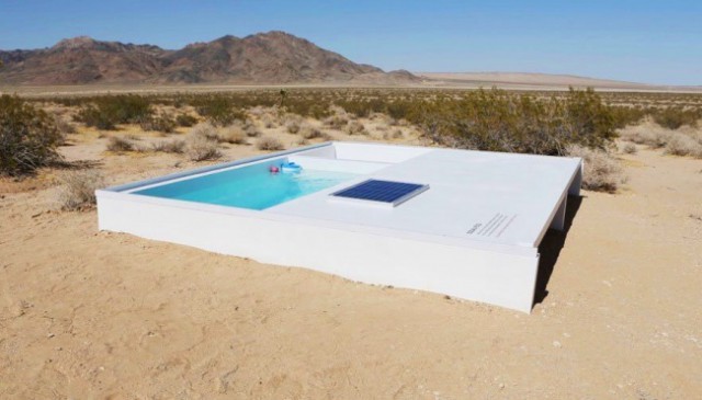 Замечательный бассейн в пустыне Мохаве установил австрийский художник. Искупаться в нем может любой, кому посчастливится встретить его на своем пути. Отыскать бассейн весьма сложно.