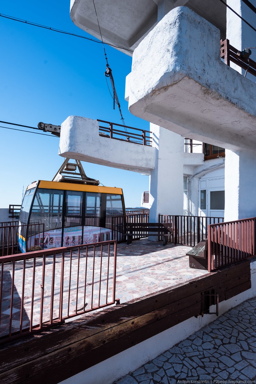 При реконструкции прослужившие здесь почти 30 лет советские ламповые вагончики заменили на новые австрийские, вмещающие больше пассажиров. Но они, конечно, совершенно не гармонируют с окружением.