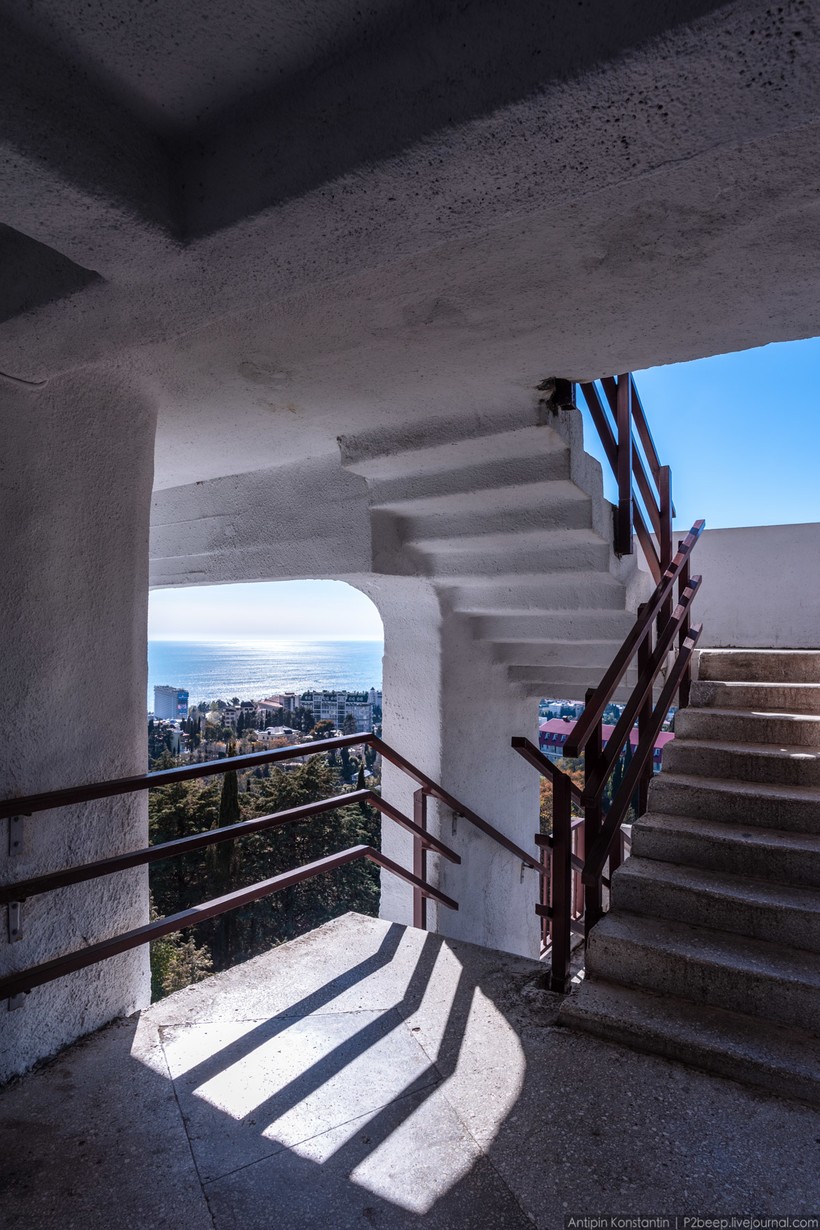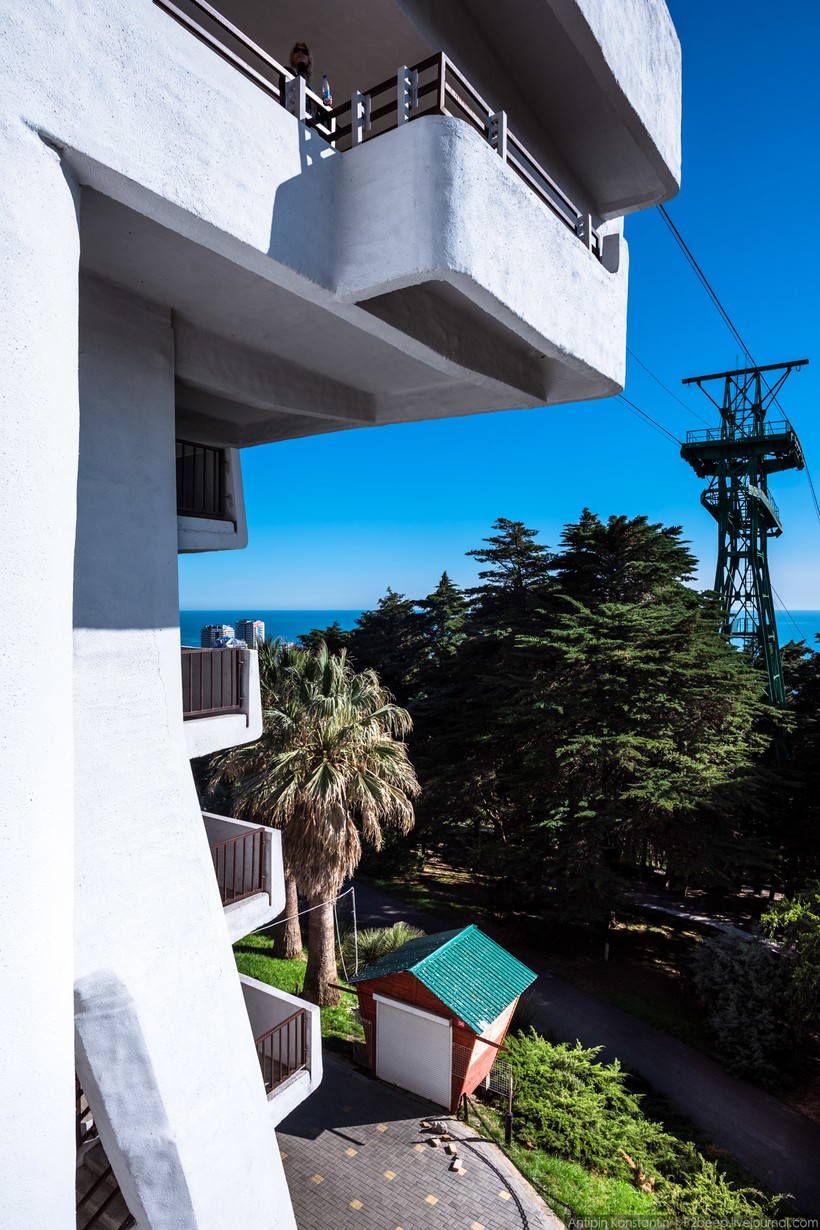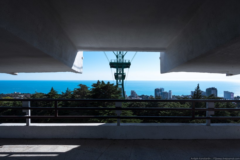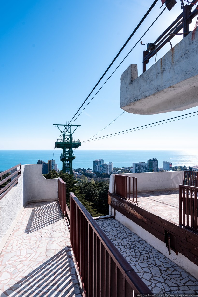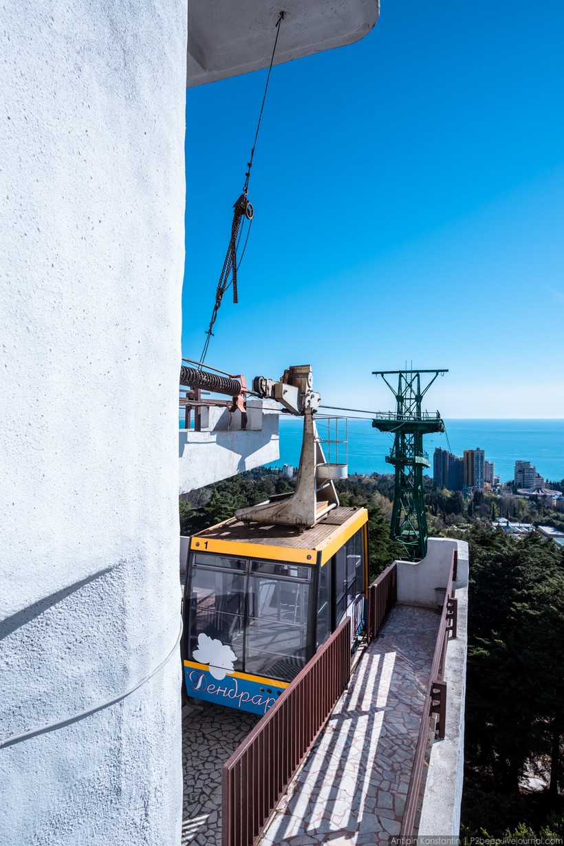 Дендрарий — один из символов Сочи. А канатная дорога, в свою очередь, является символом парка. Открывшаяся в 1977 году, она сразу же обрела популярность среди посетителей, ведь куда проще осматривать парк, спускаясь с горы, чем забираясь. На башнях-станциях архитектором Борисом Гурьяновым были предусмотрены смотровые площадки. С верхней и сейчас открывается неплохая панорама города, а вот нижняя оказалась окружена высотными жилыми комплексами, построенными к Олимпиаде…