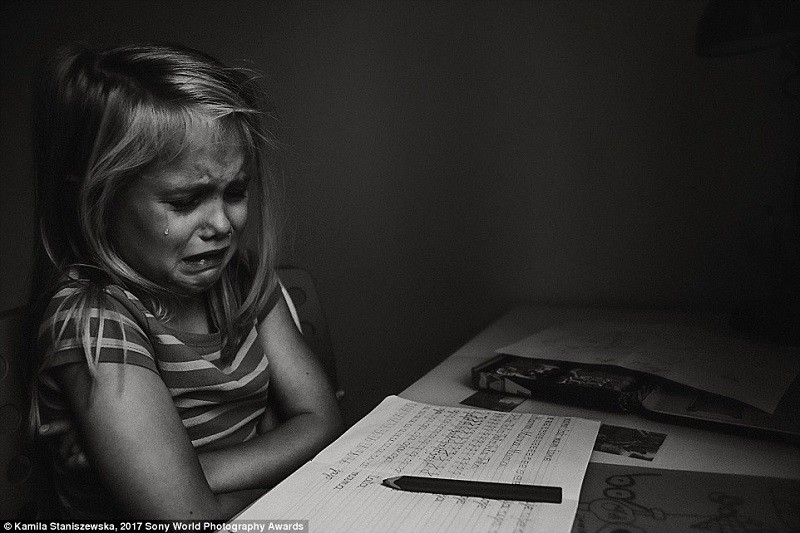 6-летняя дочь польского фотографа Камилы Станишевской плачет, потому что не хочет делать домашнее задание