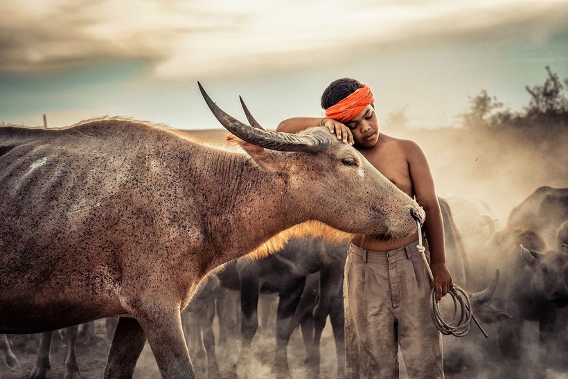 Мальчик пасет коров. Накхонситхаммарат, Таиланд