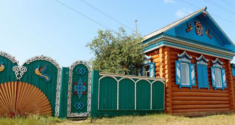 Особенность села — это его дома. Сложенные из бруса, все они выкрашены в яркие цвета, с резными ставнями и расписными заборами и чем-то напоминают детскую сказку.