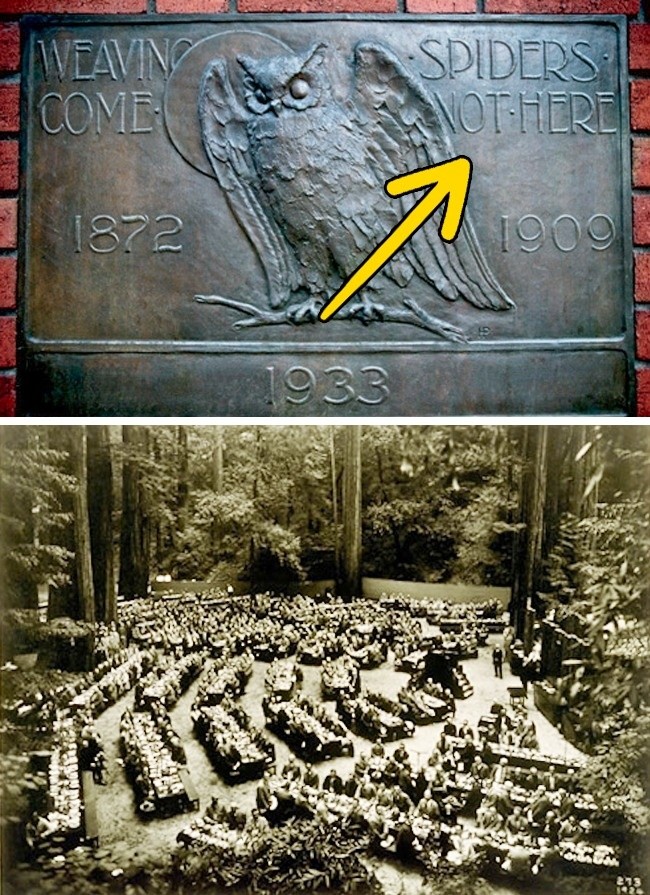 Это закрытый клуб для элиты, расположенный в древнем калифорнийском лесу. С 1899 года здесь каждый год собираются самые влиятельные люди США, в том числе и президенты. Говорят, в 1942 году здесь был утвержден «Проект Манхэттен» — такое кодовое название носила программа США по разработке ядерного оружия.
