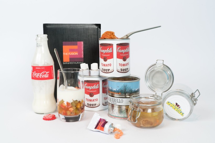 Уорхол часто обращался к проблеме чрезмерного потребления. Один из самых мощных примеров этой темы — знаменитая банка супа «Кэмпбелл» (Campbell’s Soup Cans). На экспозиции в отеле они представлены в классическом варианте 1967 года. Также здесь можно увидеть уникальную работу 1984 года, выпущенную к XIV зимним Олимпийским играм в Сараево, а также «одноразовое» хлопковое платье Campbell Soup Dress.