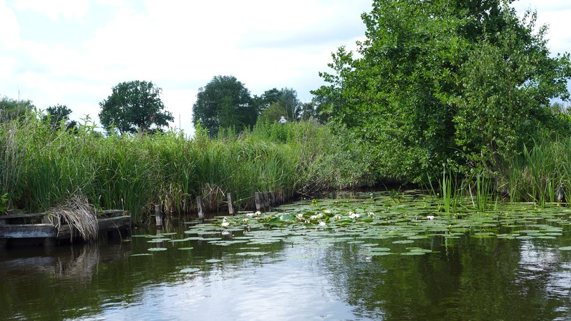Речные маршруты составлены таким образом, что все деревенские каналы, плавно ведут вашу лодку по направлению к природному заповеднику de Wieden, представляющему собой полузатопленные луга и торфяные болота, расположенные между озерами, образованными после добычи в этом районе торфа. Любой охотник позавидует количеству взлетающей из кустов живности. Мы насчитали около 10 диких водоплавающих видов: речные чайки, дикие утки-кряквы, лебеди, гагары, нырки, чибисы, хохлатая чернеть, видели даже беркута на охоте.
