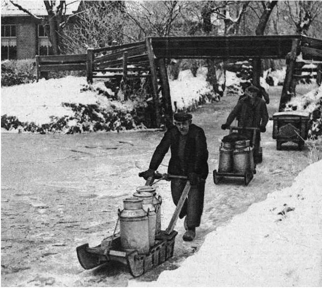 Зимой же, когда каналы были скованы крепким льдом, на коньках и санках доставляли бидоны с молоком и необходимые продукты из местных лавок.