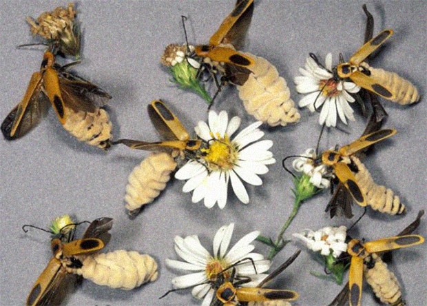 Но самое жуткое начинается после: спустя 15-20 часов мертвый жук расправляет крылья, а его брюшко раздувается из-за поселившегося внутри грибка. Если такая метаморфоза происходит с самкой мягкотелки, ничего не подозревающему самцу со стороны может показаться, что она готова к размножению (расправленные крылья для мягкотелок — признак привлекательности). В процессе попытки спаривания грибок заражает и незадачливого жениха.