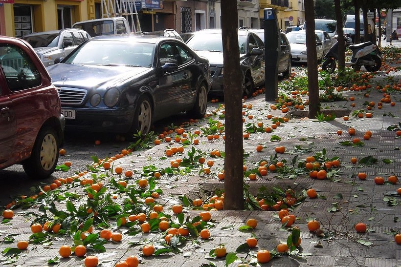 Созревшие апельсины покрывают городские улицы в Севилье (Испания)