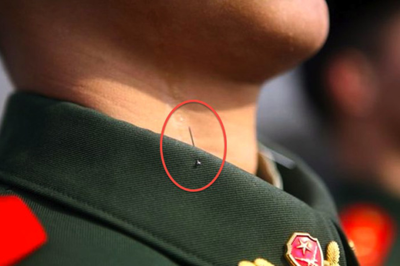 Чтобы солдаты китайской армии правильно держали головы, на их воротниках закрепляют булавки.