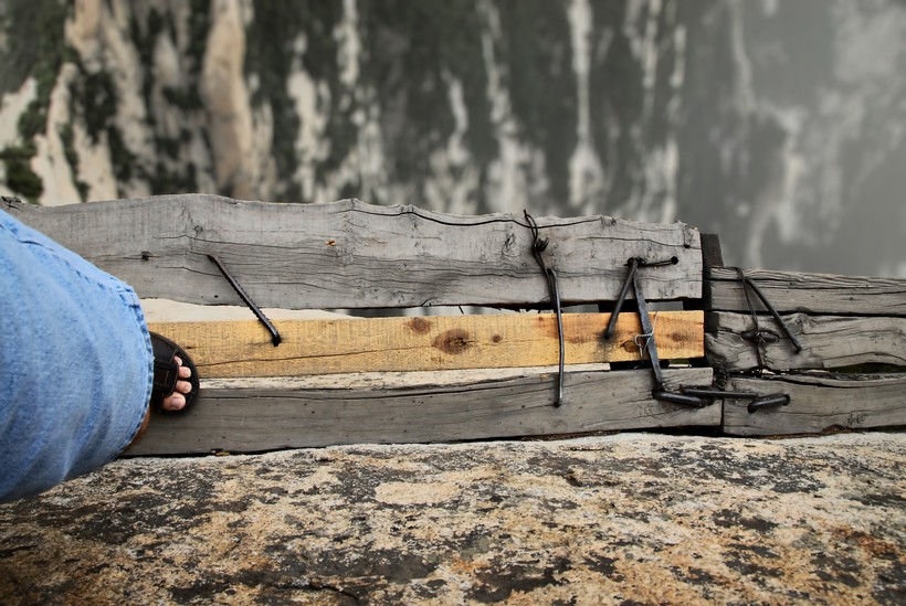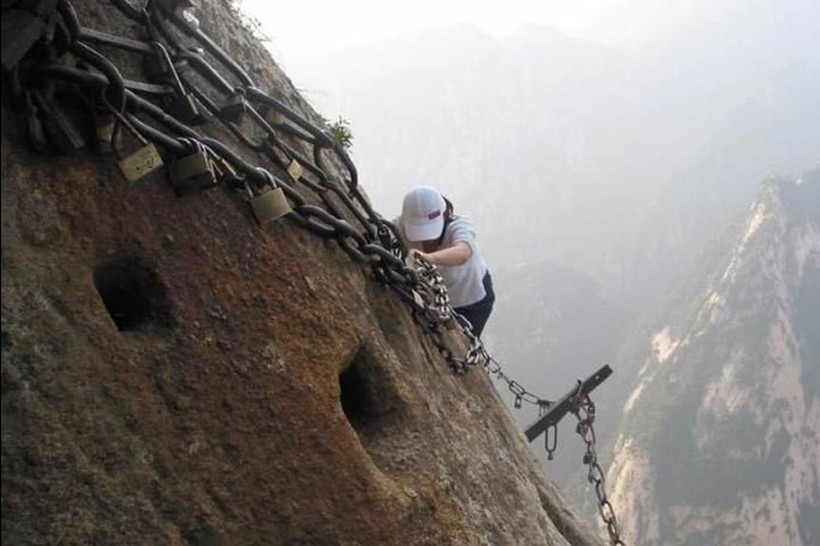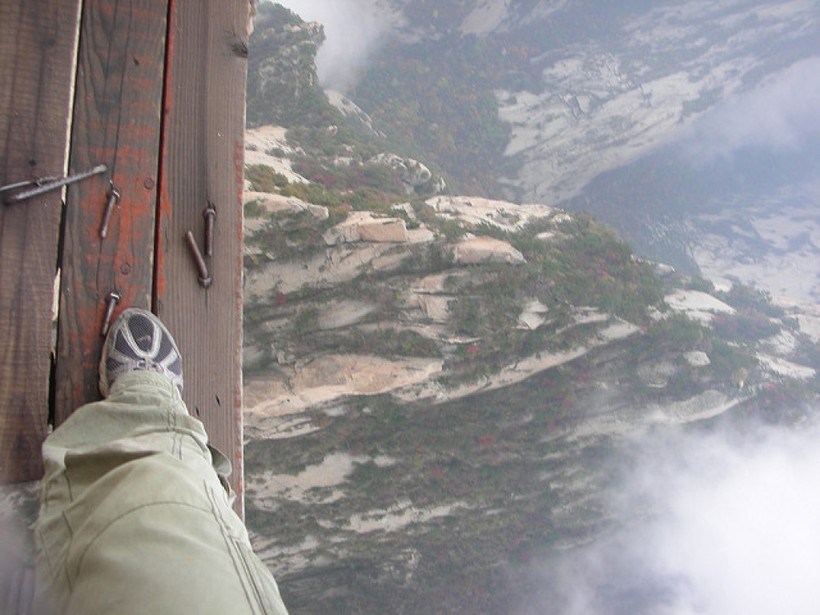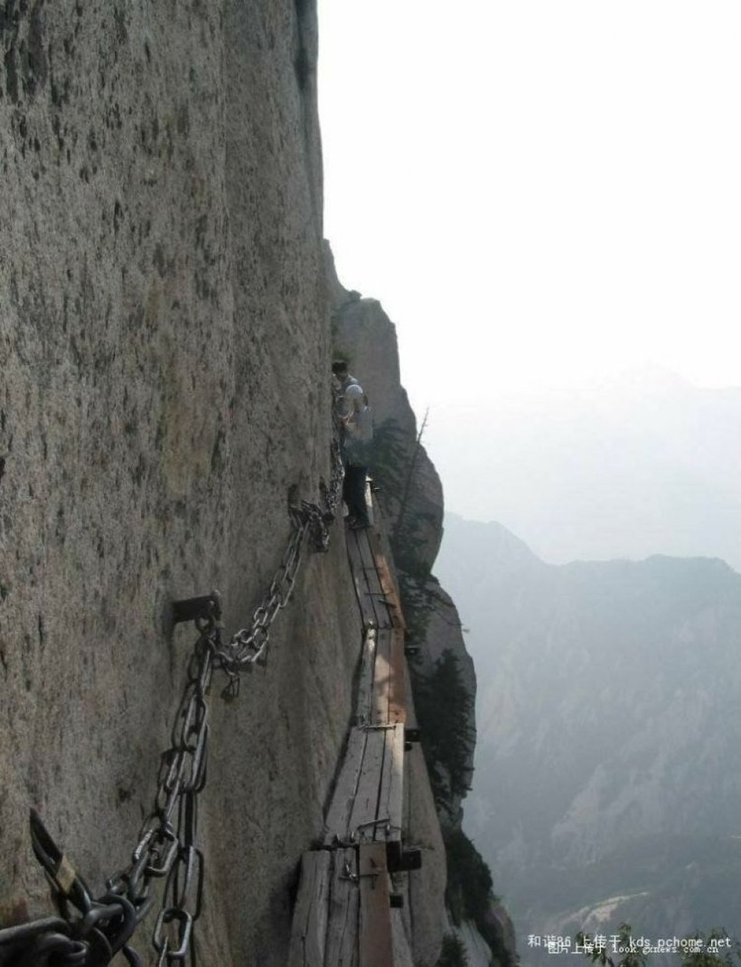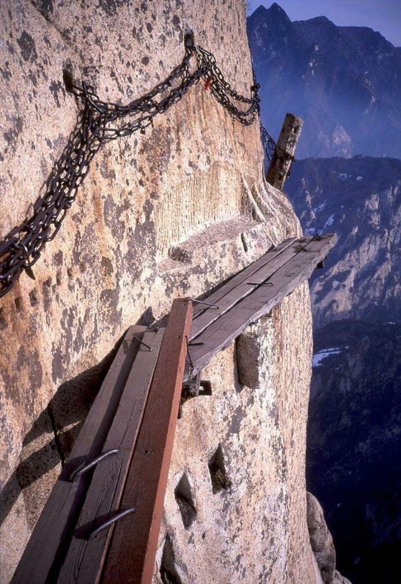 В Китае, неподалеку от города Хуаинь, расположилось одно из самых жутких и опасных мест на планете. Речь идет об ужасающей тропе, пролегающей по склону горы Хуашань и ведущей прямо на ее вершину. Тем, кто боится высоты, не стоит даже помышлять о преодолении этого страшного маршрута. И даже любителям адреналиновых выбросов стоит хорошенько подумать, прежде чем отправляться сюда за острыми ощущениями. Посмотрите и решите сами, стоит ли оно того.