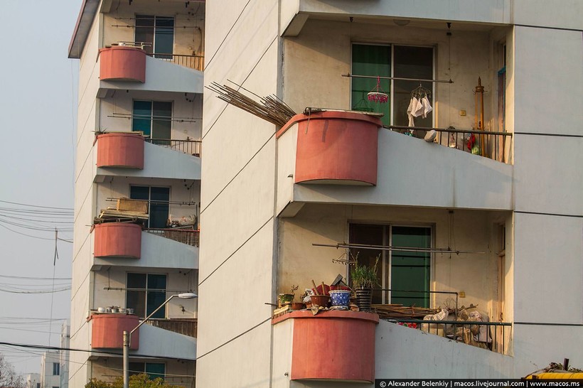 Балконы, полные барахла. Зато незастекленные: запрещено, чтобы не выпендривались.
