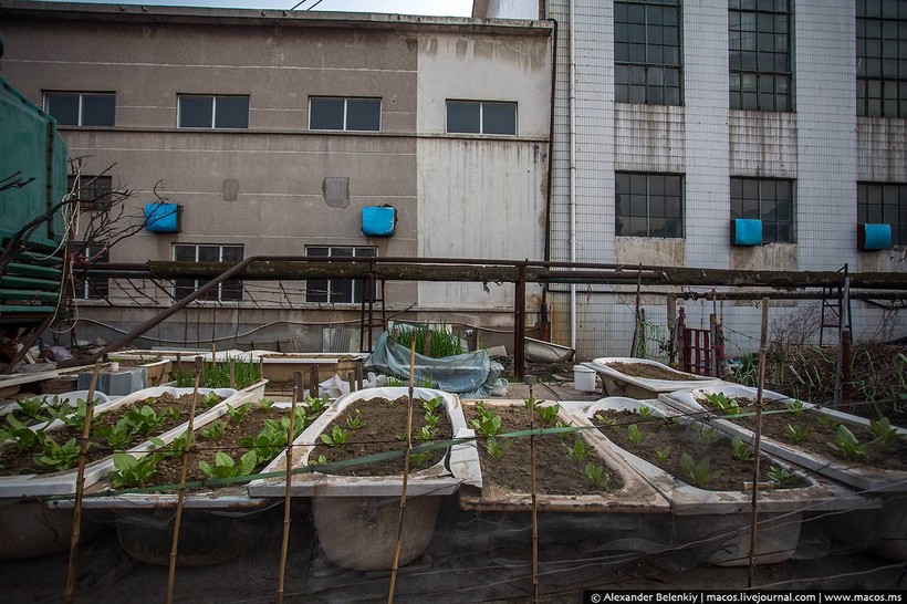 Я забрел в зону коллективных огородов, растения разводят в старых ванных, полных земли. Там был тупик, пришлось идти обратно.