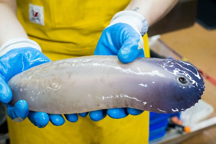 Особый ажиотаж вызвала так называемая «рыба без лица». Ее более 150 лет считали вымершей, а изображения странного существа сохранились только в виде рисунков. Теперь же выяснилось, что вид прекрасно себя чувствует среди непроглядной морской бездны. Снаружи у нее находятся только ноздри и рот, а глаза, возможно, расположены под кожей.