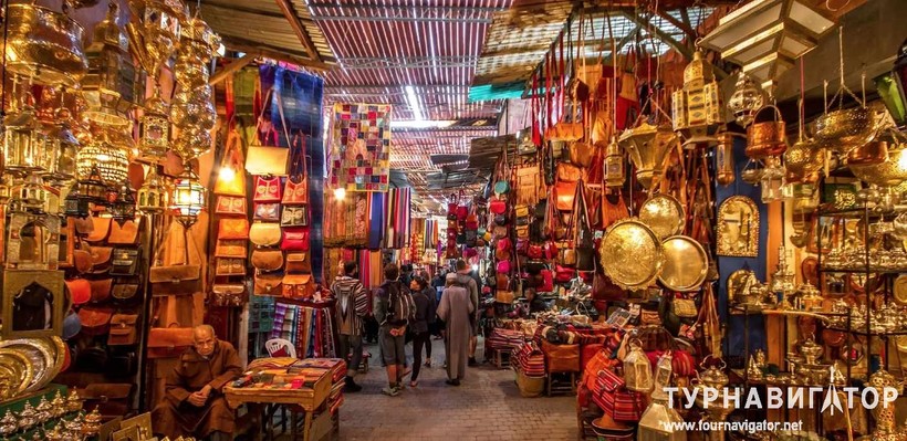 Рынок в Марракеше напоминает какую-то восточную сказку, где непременно захочется найти волшебную лампу. А еще захочется накупить нужных и не особо нужных вещей: тапочки Хоттабыча всевозможных расцветок, венички сушеных трав, известные и неизвестные специи, керамические тарелочки, шкатулочки, изделия из верблюжьей шерсти. Ощущение праздника после посещения такого сказочного рынка гарантировано!