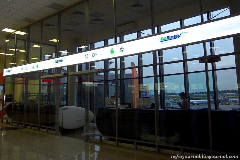 Капсулы финского производства. Минимальное время аренды: днем — 1 час, ночью — 2 часа. С 10:00 до 22:00 — 500 рублей/час, с 22:00 до 10:00 — 760 рублей за 2 часа. Впервые GoSleep появился в аэропорту Абу-Даби в мае 2013 года.