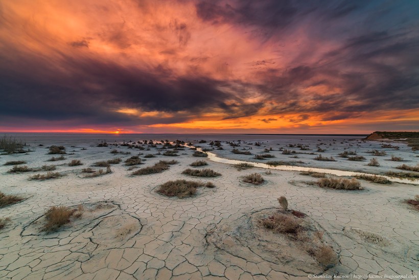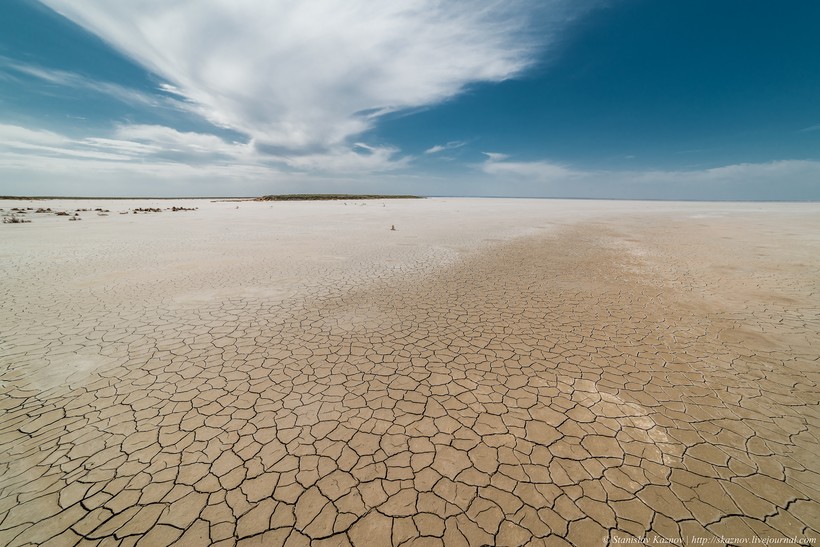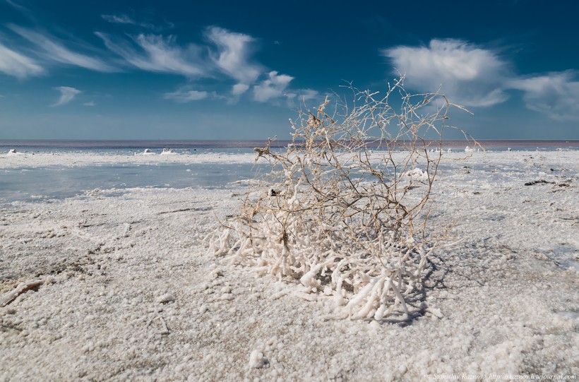 Береговая линия очень разнообразна (а озеро большое, площадью примерно 152 кв.км.): здесь есть и пляжи, и мелководье, солончаки, овраги, живописные впадающие реки, долины. В жаркое время года можно просто бродить по самому озеру. А для фотографов здесь вообще раздолье: от соли все белое, будто покрыто снегом, необычной формы кристаллы и какие-то инопланетные пейзажи.