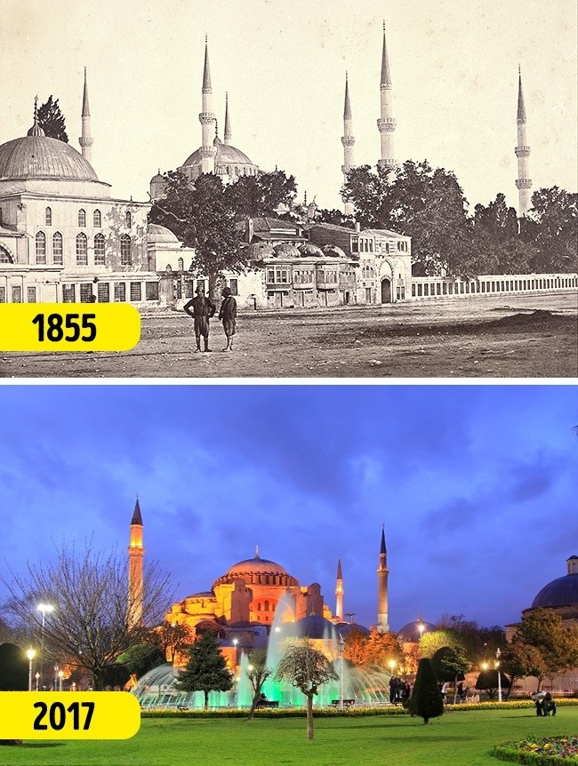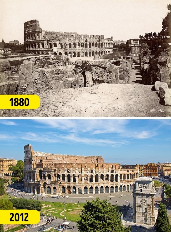 Время идет — все меняется. Даже легендарные, вечные памятники архитектуры и другие знаменитые достопримечательности не могут похвастаться неприкосновенностью перед лицом десятилетий. В нашем материале сегодня мы предлагаем вам взглянуть, что произошло с самыми популярными туристическими пунктами с тех времен, когда человеку была доступна только монохромная фотография.