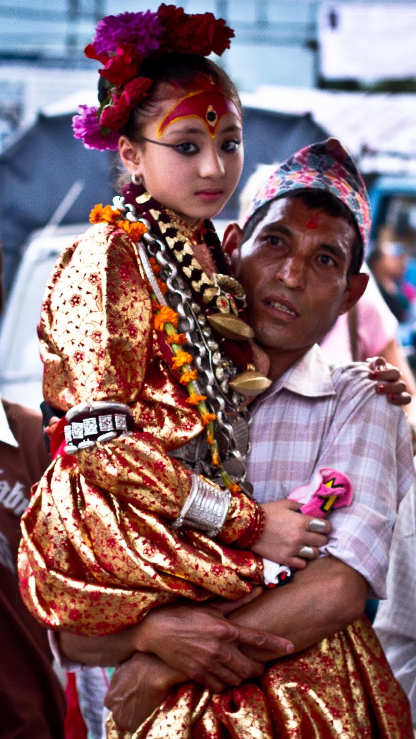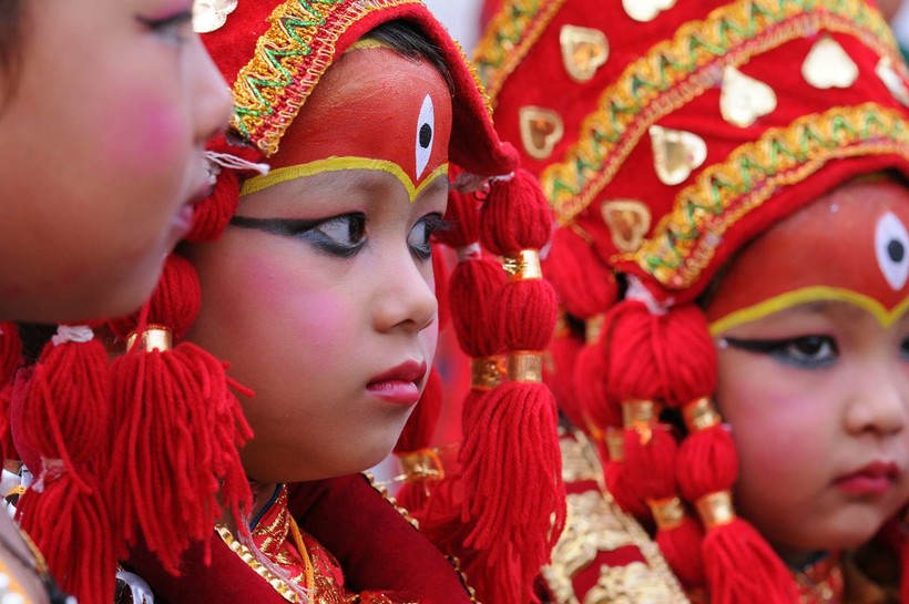 Кумари — маленькие девочки, которых непальские индуисты и буддисты считают настоящими богинями. Каждое утро их одевают в красную одежду и украшают бесценными украшениями, в их распоряжении множество игрушек и телевизор, им целует ноги сам король, а простые люди мечтают их увидеть!