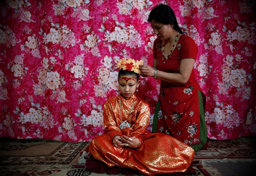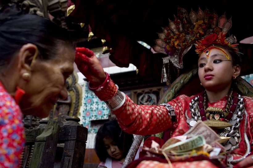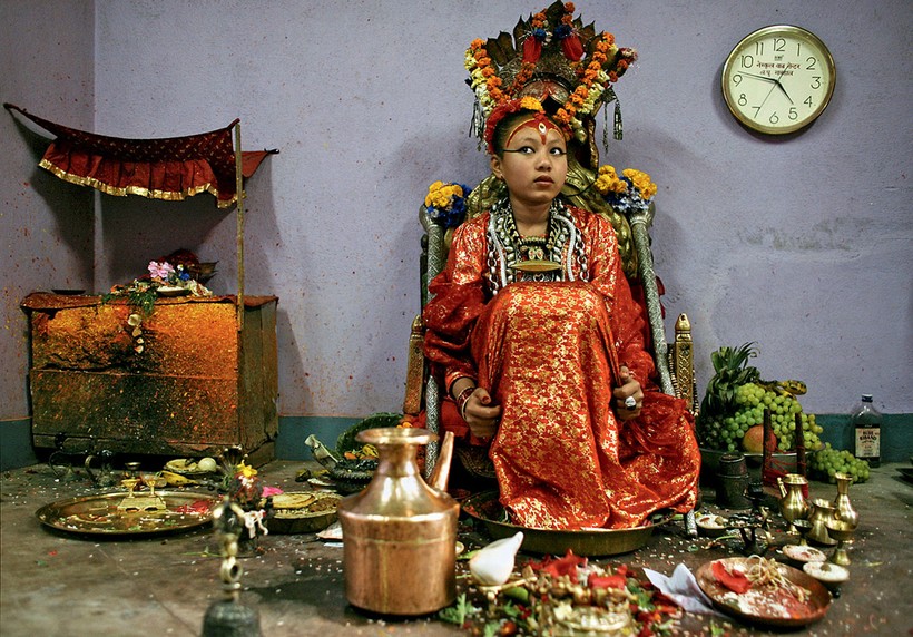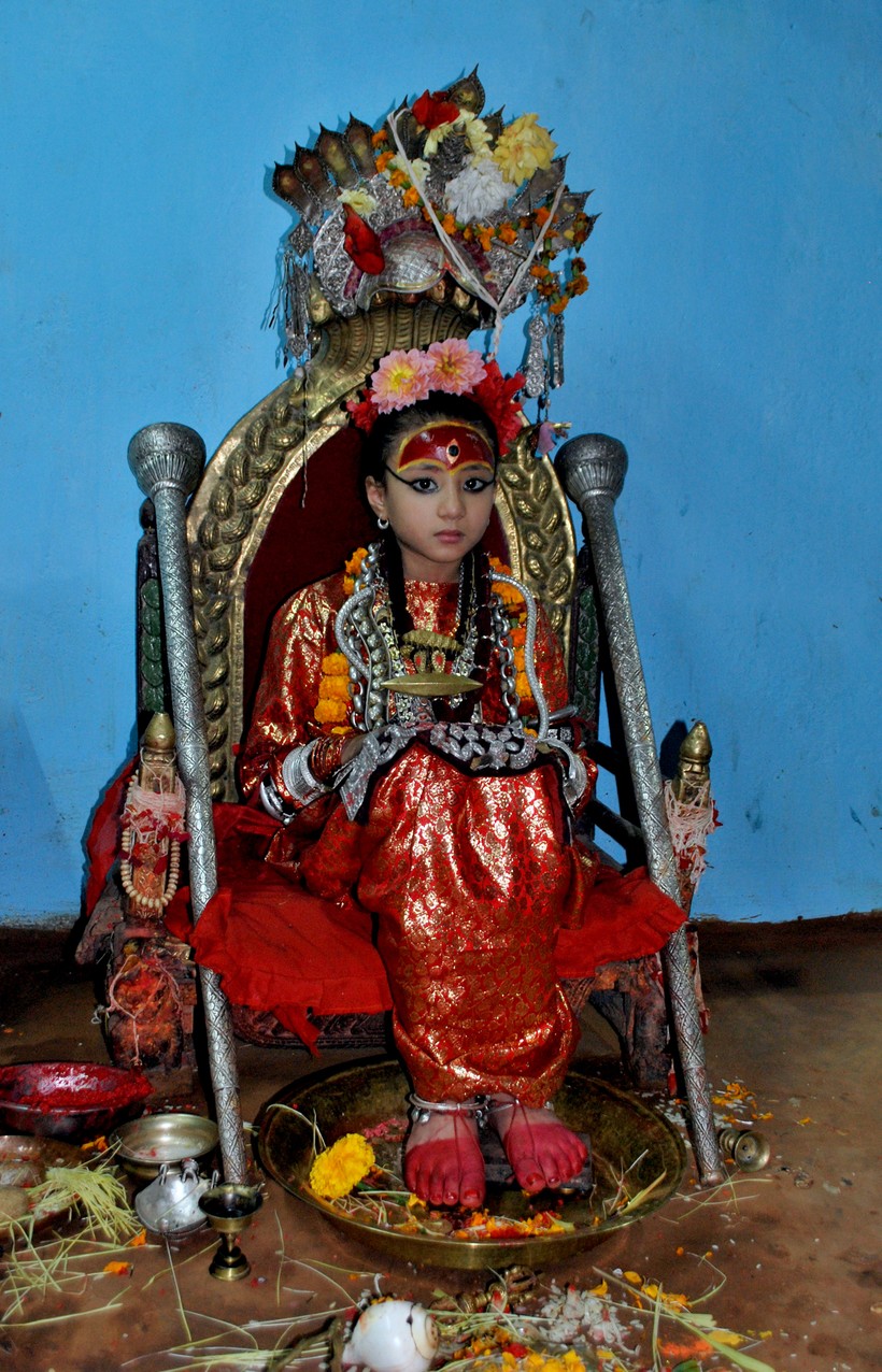 Стать богиней может любая девочка из низшей касты. Она должна быть красива, здорова, без единого шрама, бородавки или родинки. Гороскопы всех претенденток проверяют на совместимость с королем. Отобранных девочек подвергают последнему испытанию: запирают на ночь с отрубленными козлиными головами, и время от времени к ним врываются люди и пугают их. Самая смелая избирается богиней.