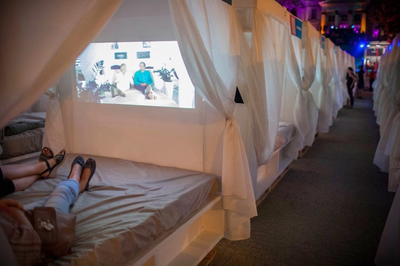 Это не столько один кинотеатр, сколько собрание различных временных кинотеатров на международном кинофестивале. Тут и кроватные кинотеатры, и под открытым небом, и в сопровождении живой музыки.