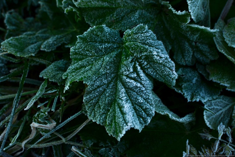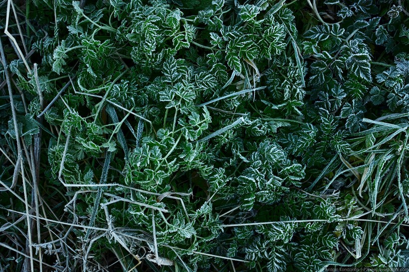 Растения еще покрыты инеем