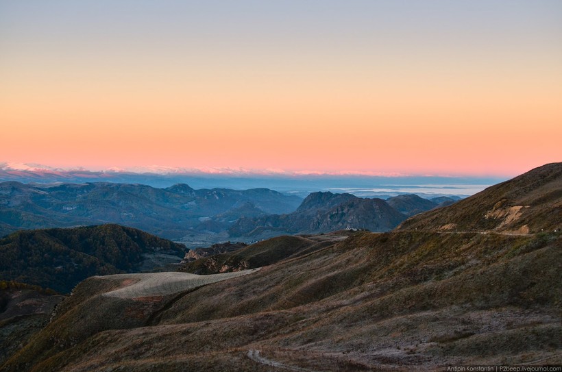 Кисловодск, в котором я остановился, расположен у границы с Карачаево-Черкесией. Выехав из города, отправляемся в Карачаевск, откуда продолжаем путь по Военно-Сухумской дороге. Путь начали еще ночью, поэтому первые часы я проспал. Зато когда проснулся на рассвете, началась красота…
