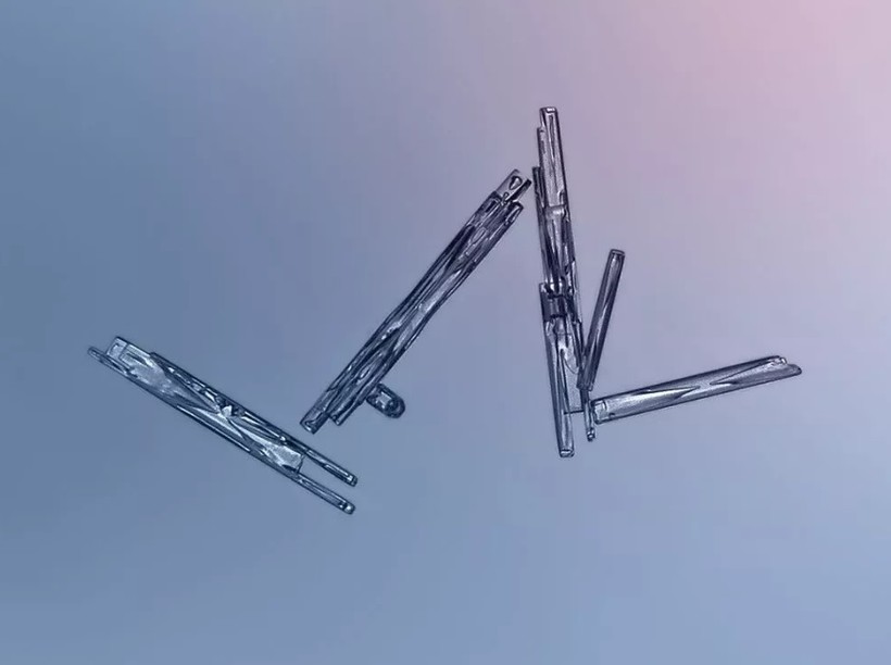 «Секретный ингредиент» этой сложной и красивой снежинки — относительно высокая влажность. С большим количеством влаги в воздухе пар конденсируется быстрее, а кристаллы льда получаются больше. Поскольку у дендритов так много ответвлений, они захватывают воздух в снежный покров, создавая самый пушистый снег.