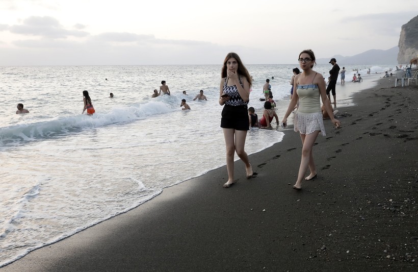 Сирия уже несколько лет охвачена войной. Но все же некоторые жители могут насладиться спокойным отдыхом у моря. Так, один из лучших пляжей страны находится недалеко от поселения Вади Кандиль, где и сделаны фотографии, именно сюда приезжают сирийцы на отдых. Вот один из таких дней. Кажется, что их жизни ничего не угрожает и они не живут на пороховой бочке, так безмятежен их отдых.
