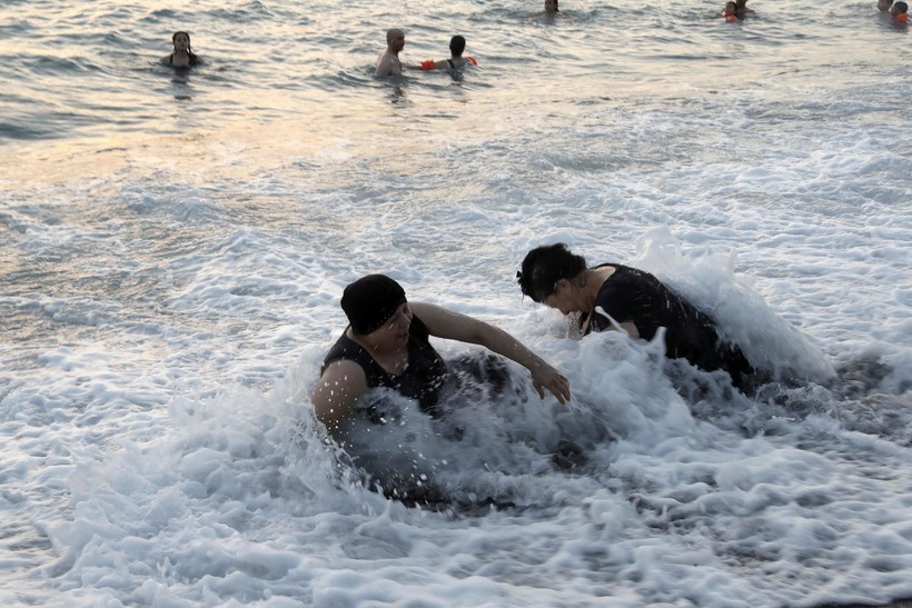 Люди с неподдельной радостью купаются в Средиземном море