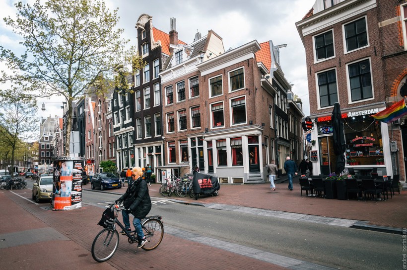 Вот мы и подошли к самому сладкому. Квартал красный фонарей. С XIII века он является десертным блюдом у порочных моряков, которые после долгих морских скитаний первым делом шли к проституткам, потом в церковь Oude Kerk, которая находится тут же и является самой старой в Амстердаме, а уж только потом отправлялись домой к семье.