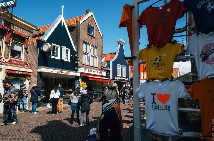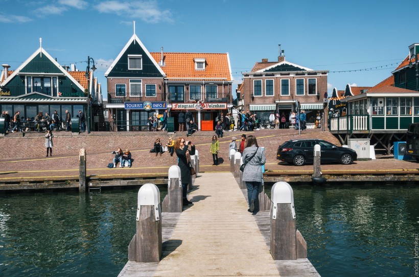 Раз уж поехали по окрестностям Амстердама, то стоит заглянуть в Волендам. Это старинная рыбацкая деревня, где один ушлый мужичок стал ублажать туристов своими сувенирами. И городок расцвел до запредельных цен на недвижимость. Сюда обязательно стоит приехать, чтобы съесть копченого угря на берегу озера Маркермер и узнать в очередной раз от местных, что оно раньше было заливом и соленым, а теперь — озеро и пресное.